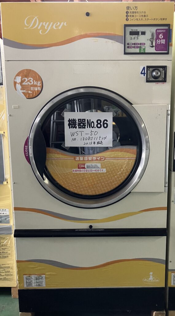 機器管理番号No.86機種乾燥機 容量23kg ガス種LPGメーカー・型式アライアンス・WST-50 単相200V 年式2013年価格190,000円(税別)機器状態説明小傷有り -